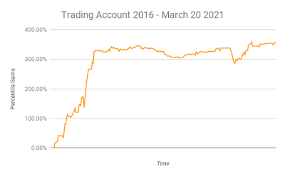 The trading account is with Questrade.  There are currently no active trades.   As of March 28, 2021, the value of this account is $4345.75.
